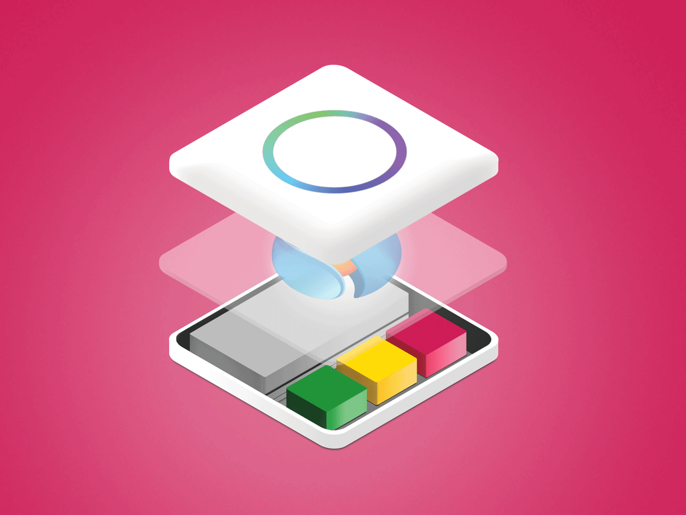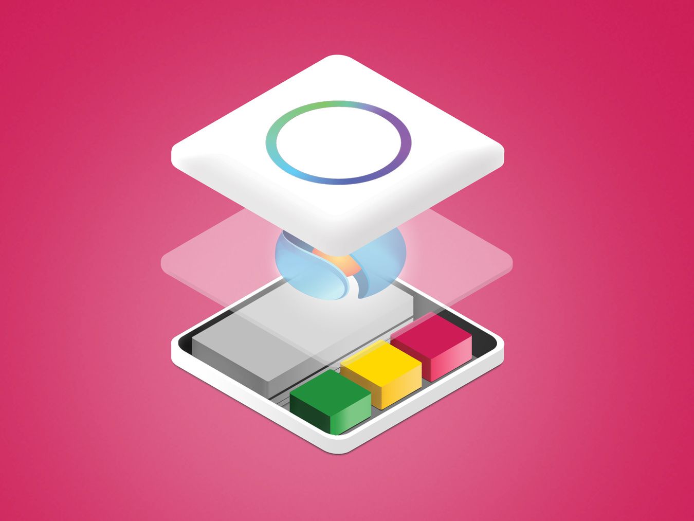 Concept of "How app looks inside" isometric. Made for marketing materials for SafeDK.com